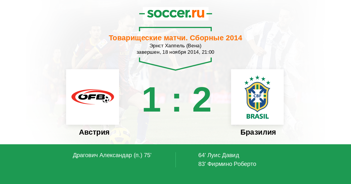 Австрия - Бразилия: обзор матча 18 ноября 2014