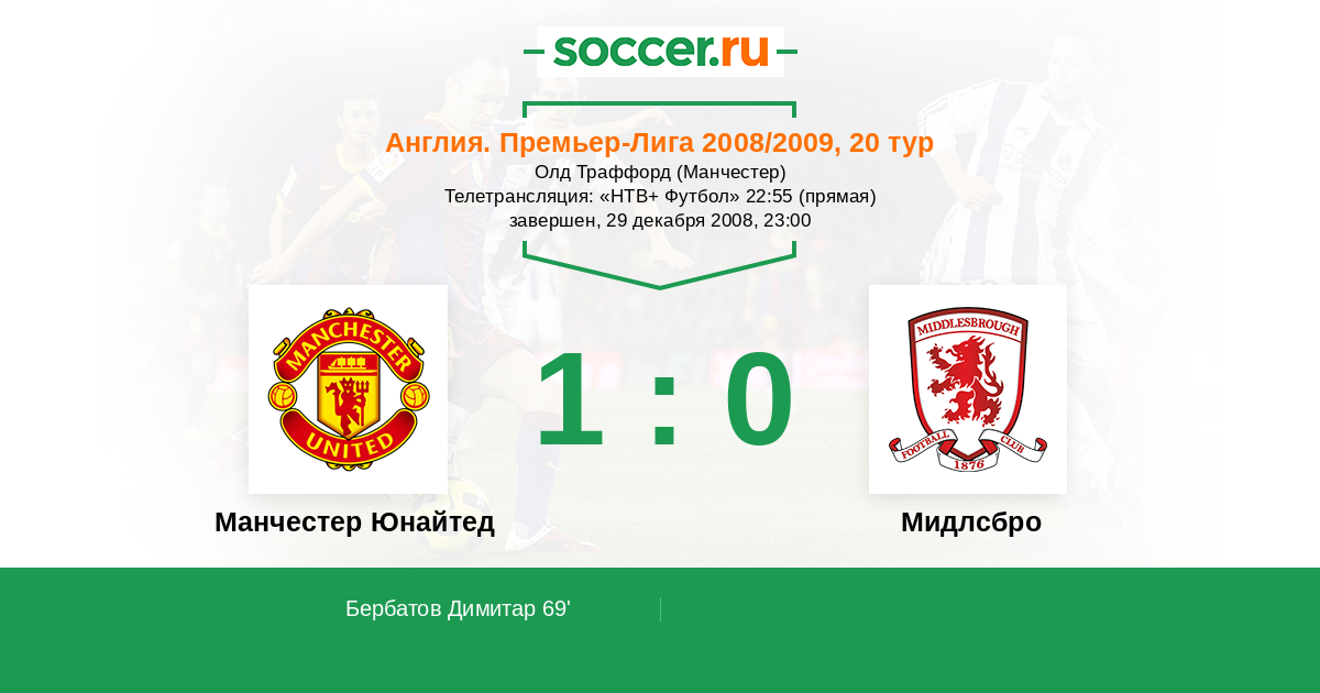 Манчестер Юнайтед - Мидлсбро: обзор матча 29 декабря 2008