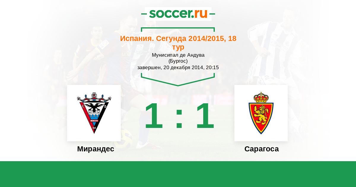 Мирандес - Сарагоса: обзор матча 20 декабря 2014