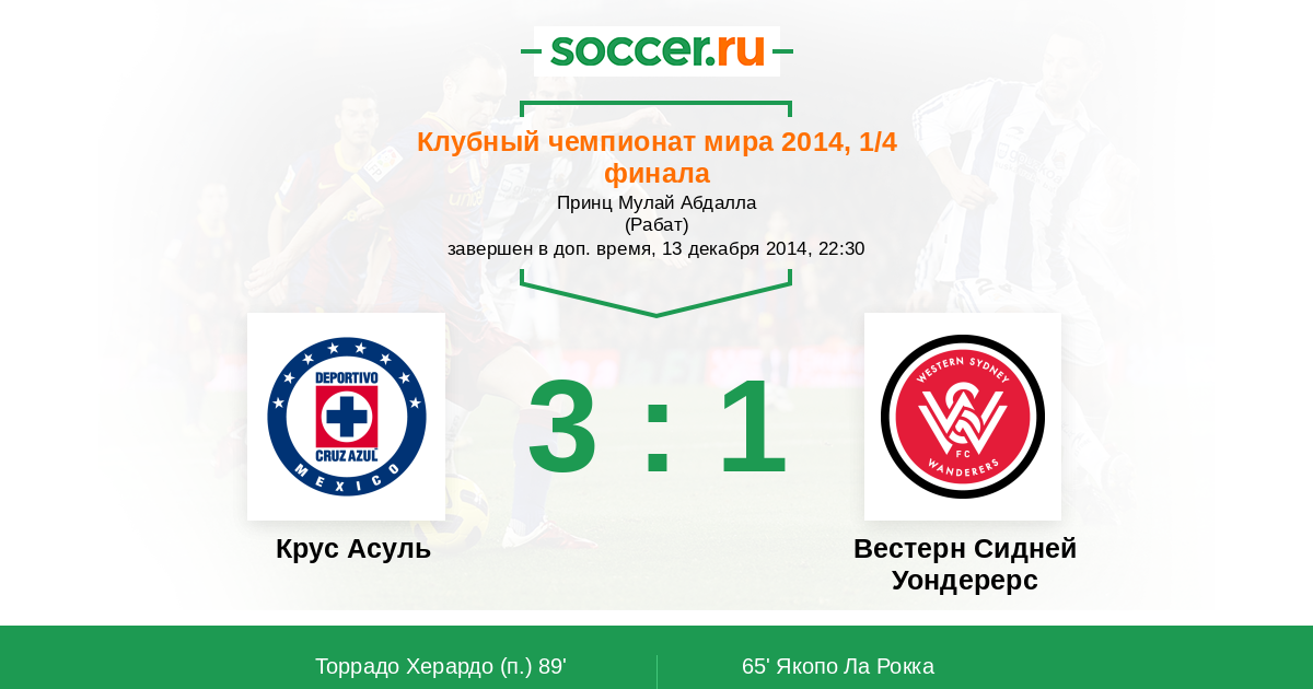 Крус Асуль - Вестерн Сидней Уондерерс: обзор матча 13 декабря 2014