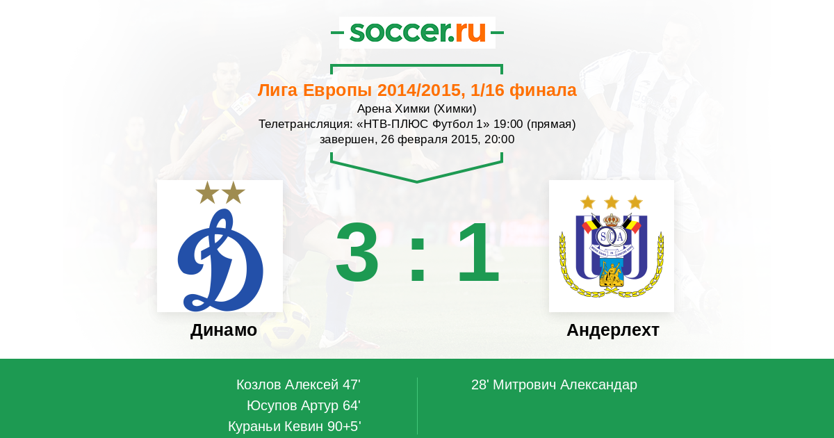Динамо - Андерлехт: обзор матча 26 февраля 2015
