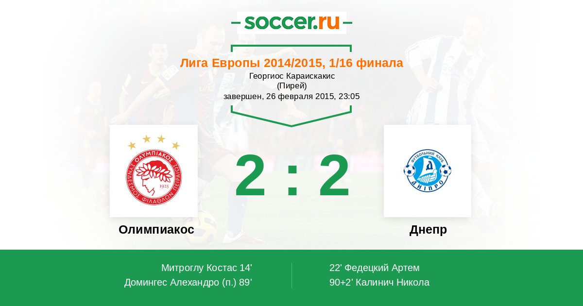 Олимпиакос - Днепр: обзор матча 26 февраля 2015