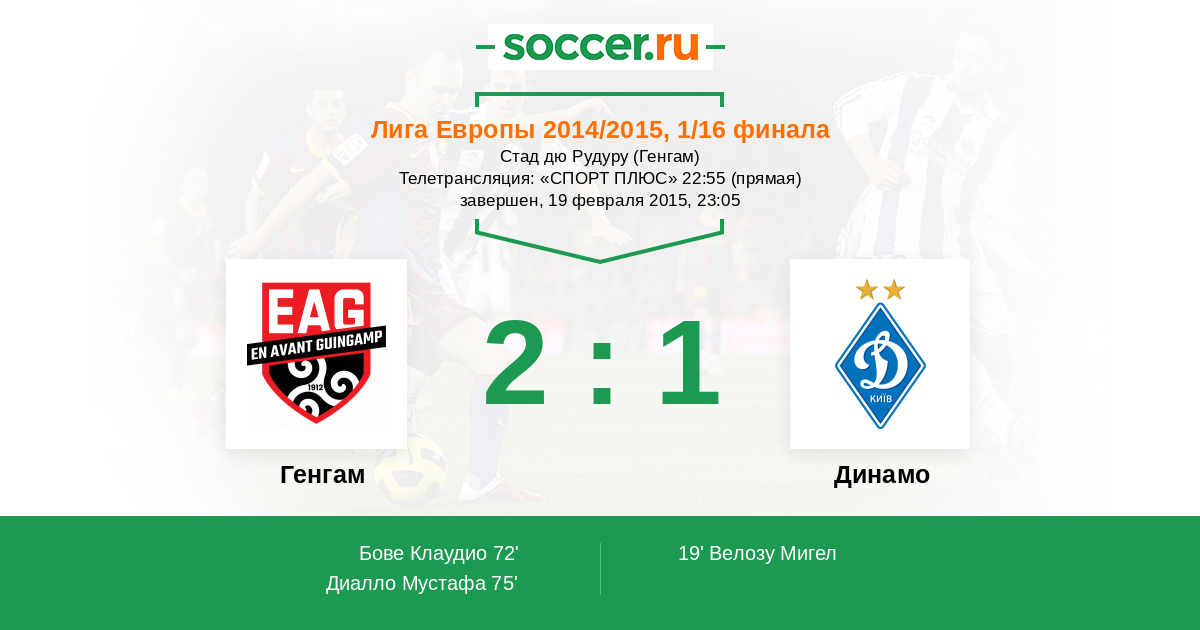Генгам - Динамо: обзор матча 19 февраля 2015