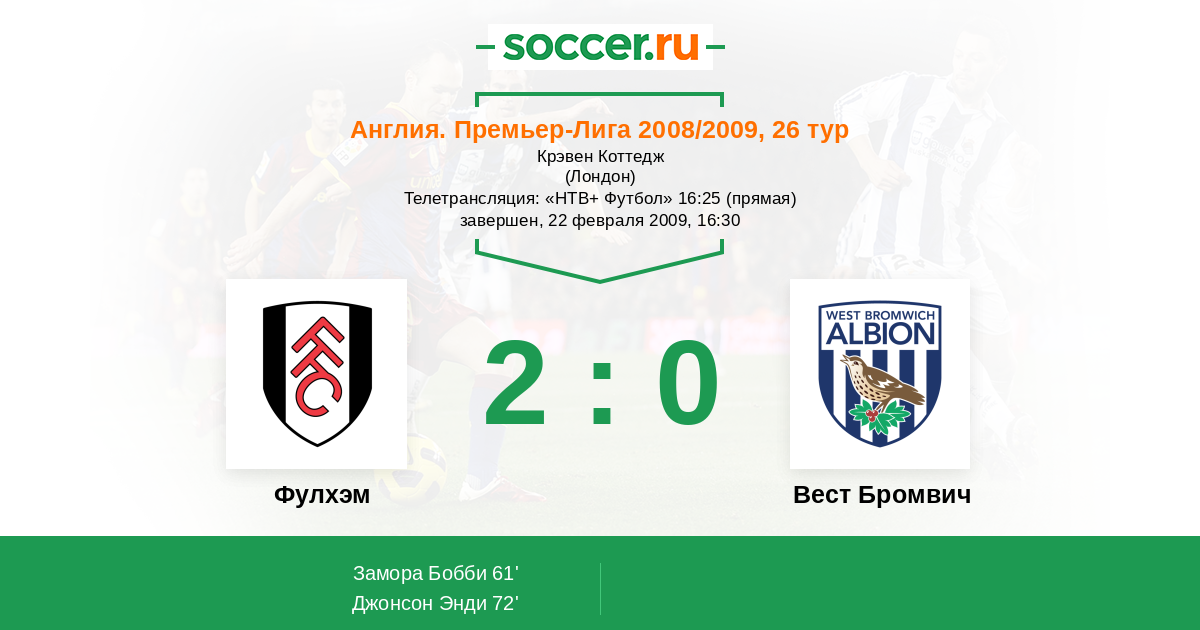 Фулхэм - Вест Бромвич: обзор матча 22 февраля 2009
