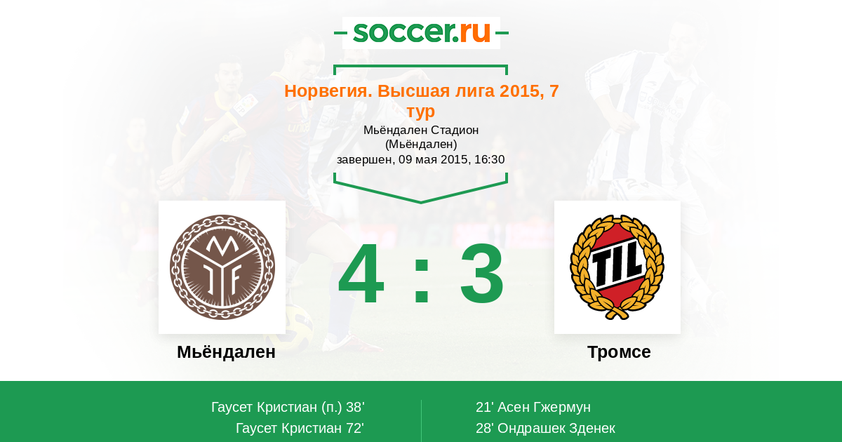 Мьёндален - Тромсе: обзор матча 9 мая 2015