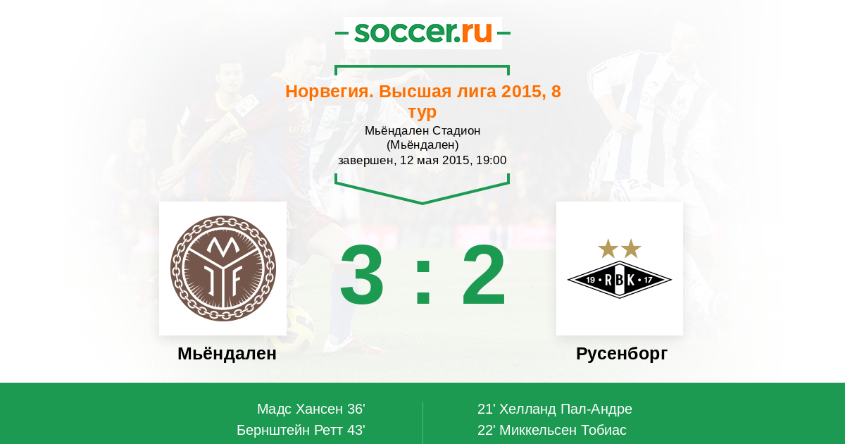 Мьёндален - Русенборг: обзор матча 12 мая 2015