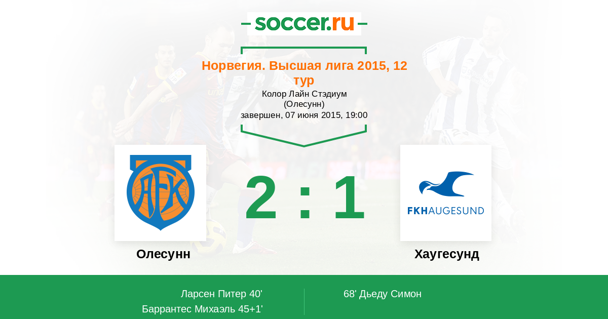 Олесунн - Хаугесунд: обзор матча 7 июня 2015