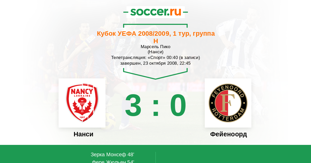 Нанси - Фейеноорд: обзор матча 23 октября 2008