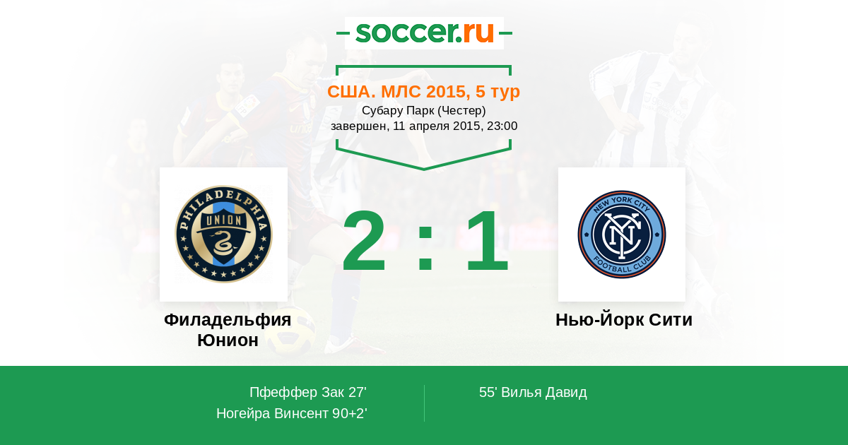 Филадельфия Юнион - Нью-Йорк Сити: обзор матча 11 апреля 2015