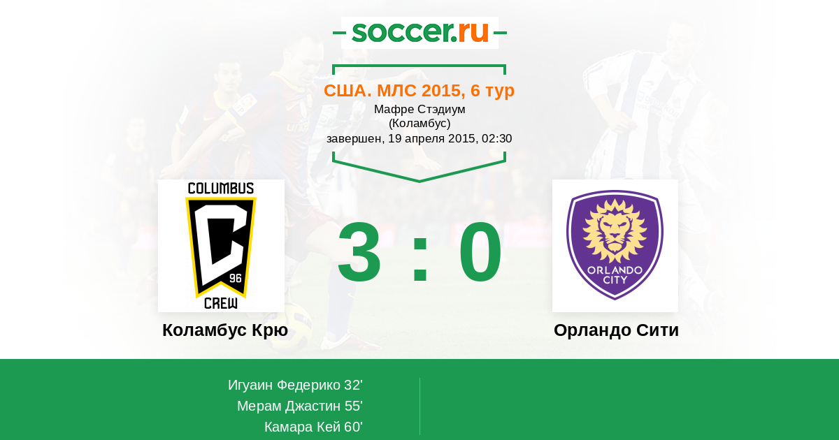 Коламбус Крю - Орландо Сити: обзор матча 19 апреля 2015
