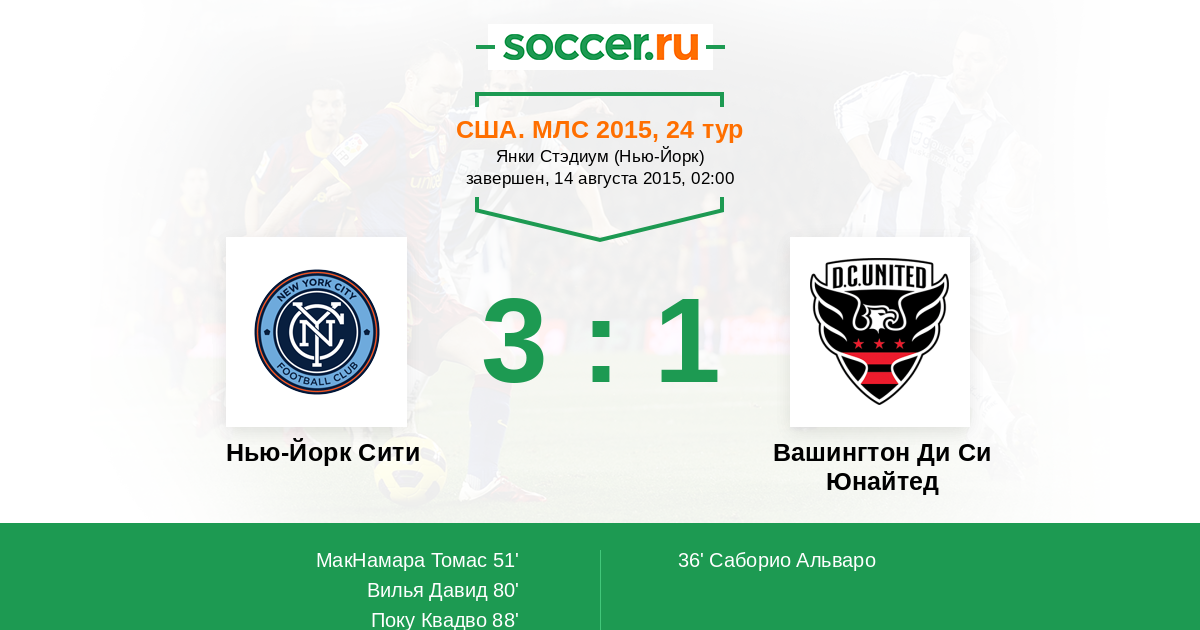 Нью-Йорк Сити - Вашингтон Ди Си Юнайтед: обзор матча 14 августа 2015
