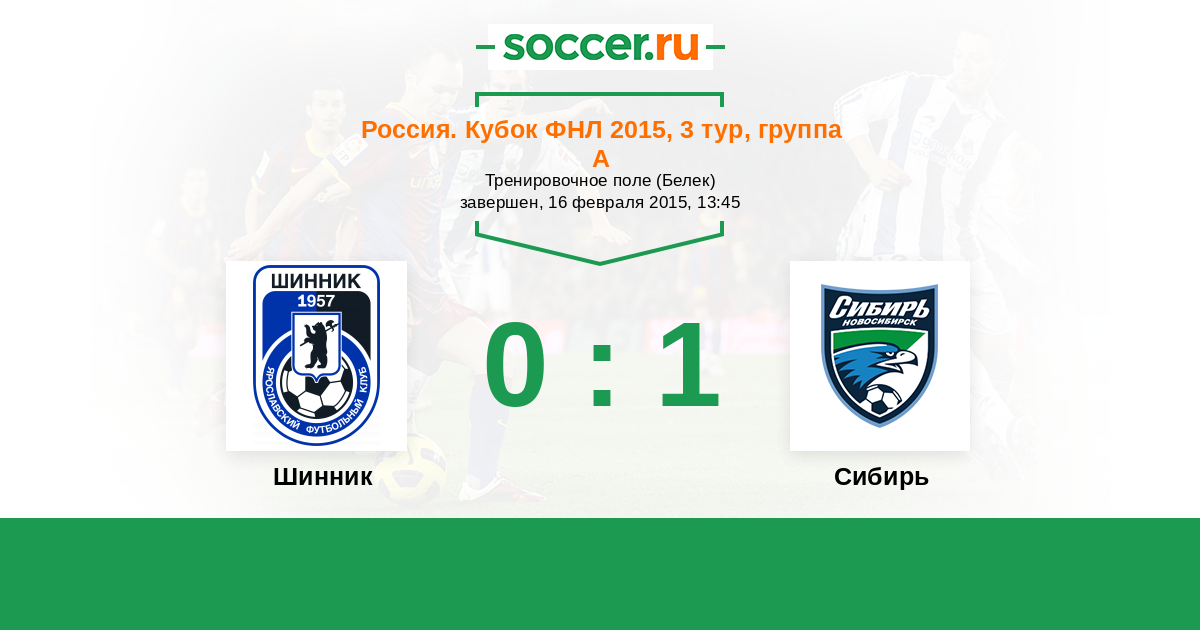 Шинник - Сибирь: обзор матча 16 февраля 2015