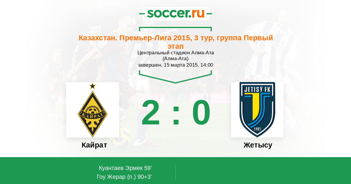 Кайрат - Жетысу: обзор матча 15 марта 2015