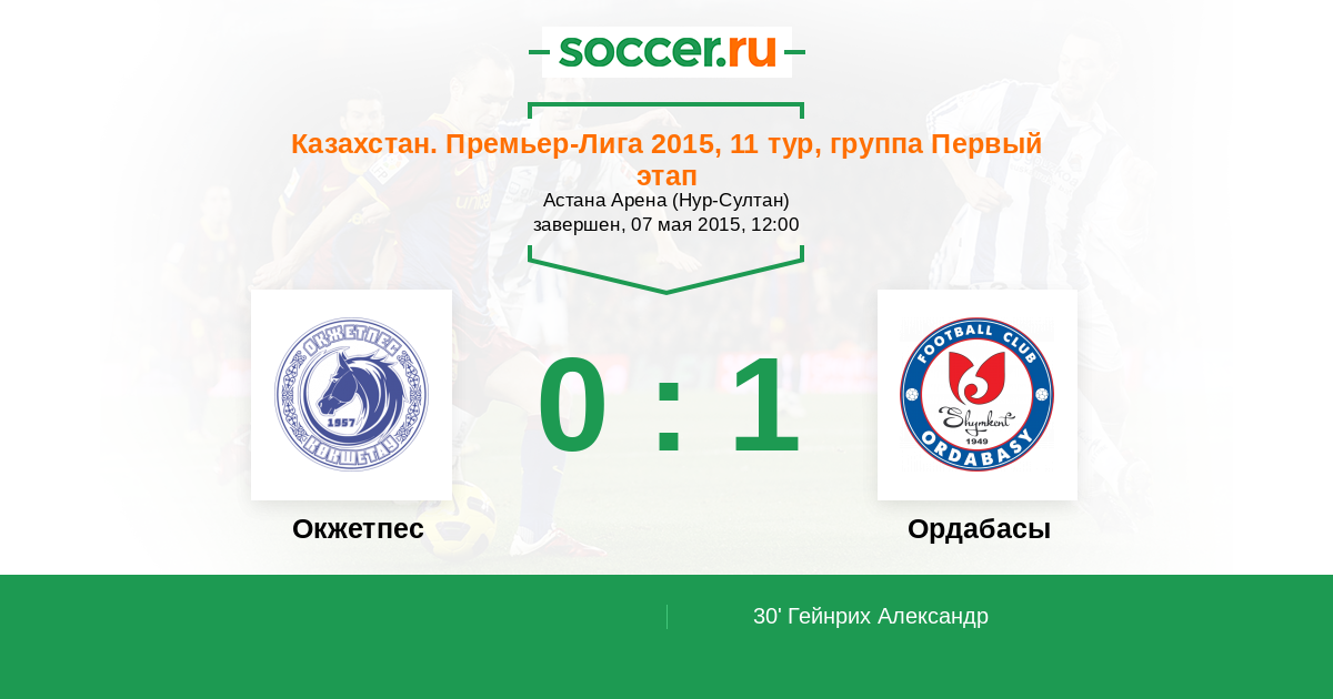 Окжетпес - Ордабасы: обзор матча 7 мая 2015