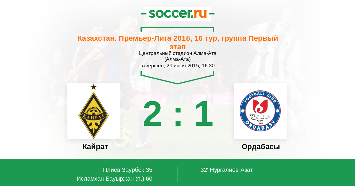 Кайрат - Ордабасы: обзор матча 20 июня 2015