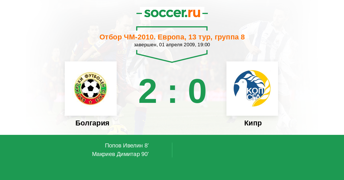 Болгария - Кипр: обзор матча 1 апреля 2009