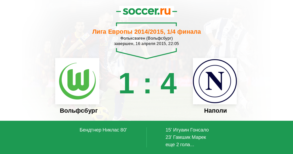 Вольфсбург - Наполи: обзор матча 16 апреля 2015