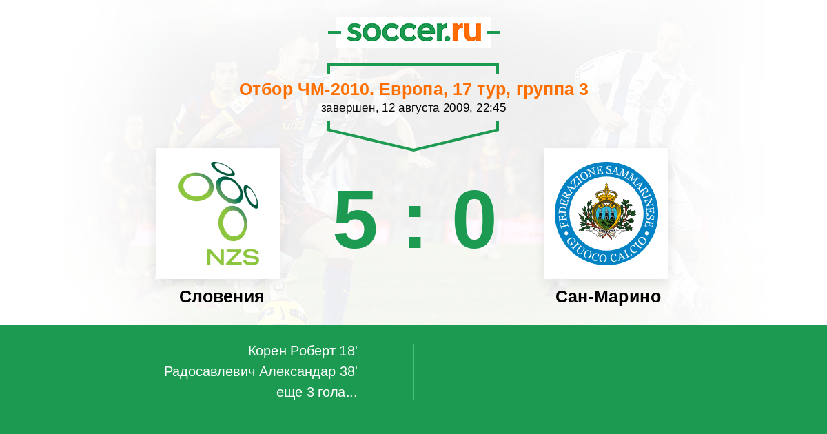 Словения - Сан-Марино: обзор матча 12 августа 2009