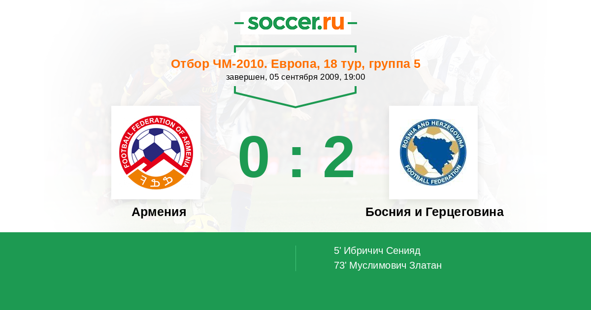 Армения - Босния и Герцеговина: обзор матча 5 сентября 2009