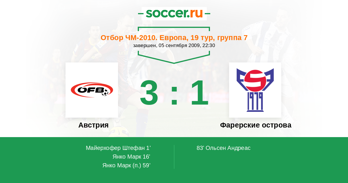 Австрия - Фарерские острова: обзор матча 5 сентября 2009