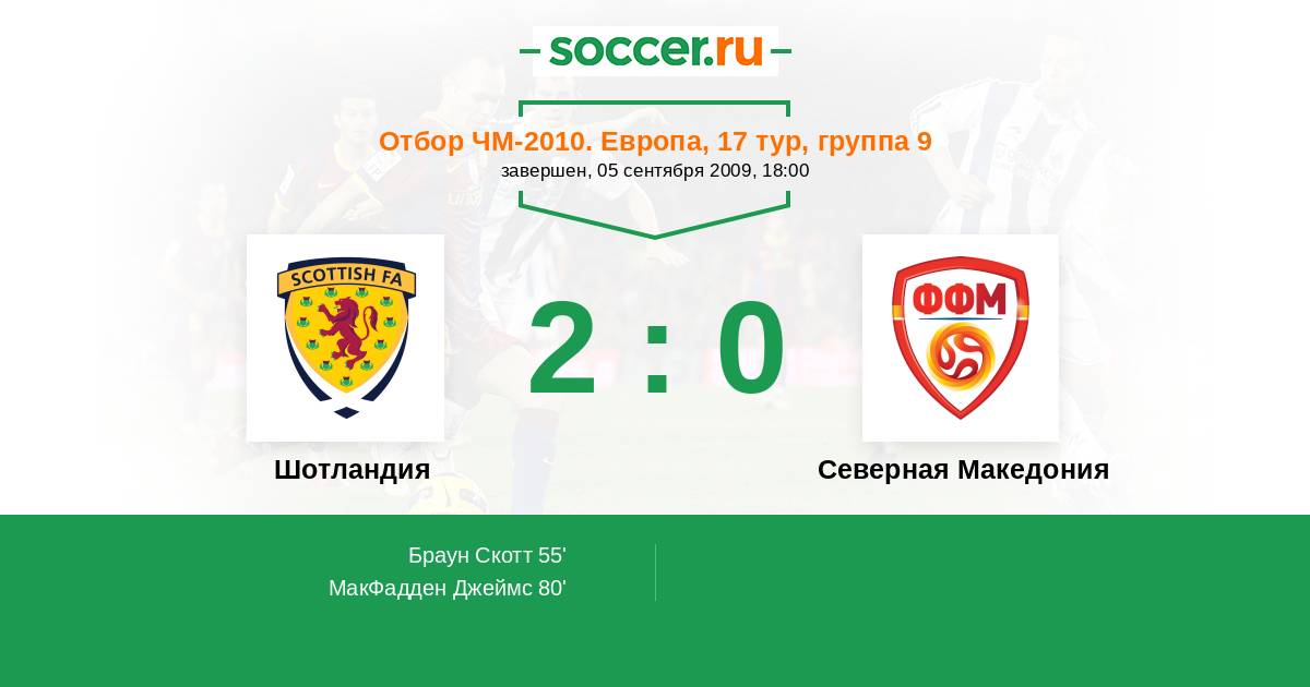 Шотландия - Северная Македония: обзор матча 5 сентября 2009