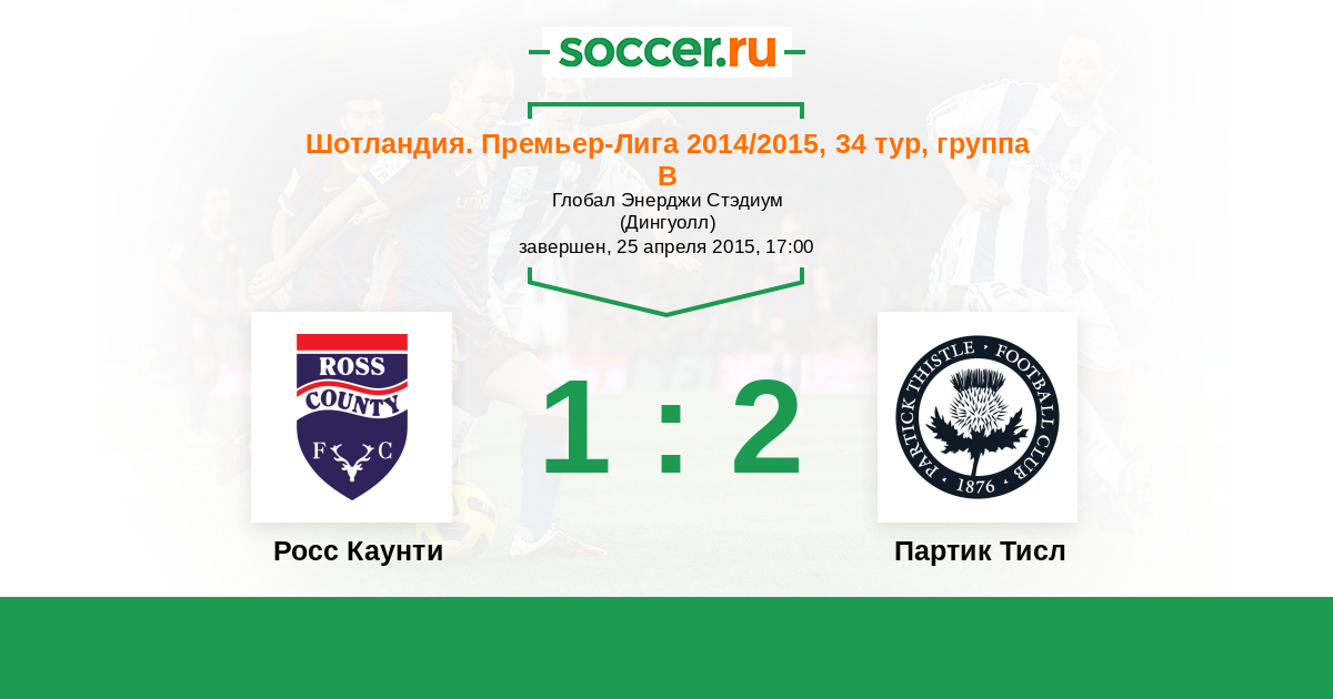 Росс Каунти - Партик Тисл: обзор матча 25 апреля 2015