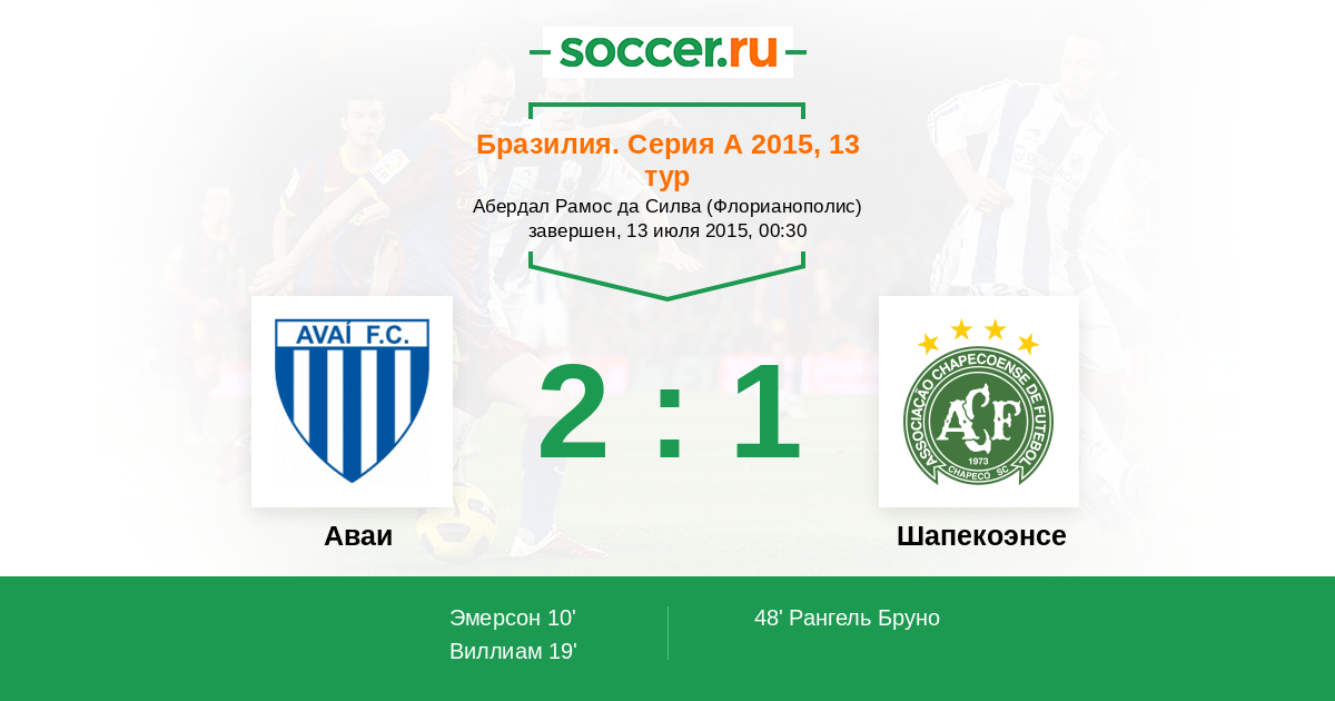 Аваи - Шапекоэнсе: обзор матча 13 июля 2015