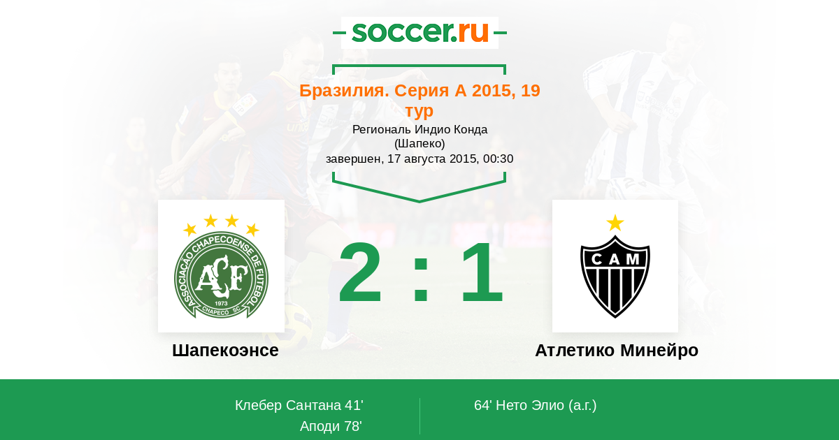 Шапекоэнсе - Атлетико Минейро: обзор матча 17 августа 2015