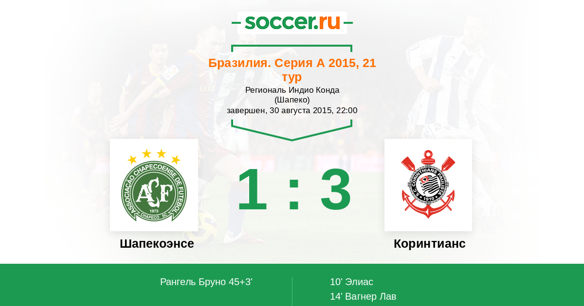 Шапекоэнсе - Коринтианс: обзор матча 30 августа 2015