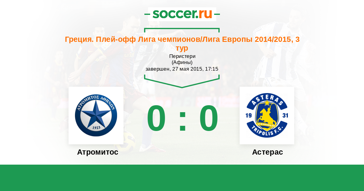 Атромитос - Астерас: обзор матча 27 мая 2015