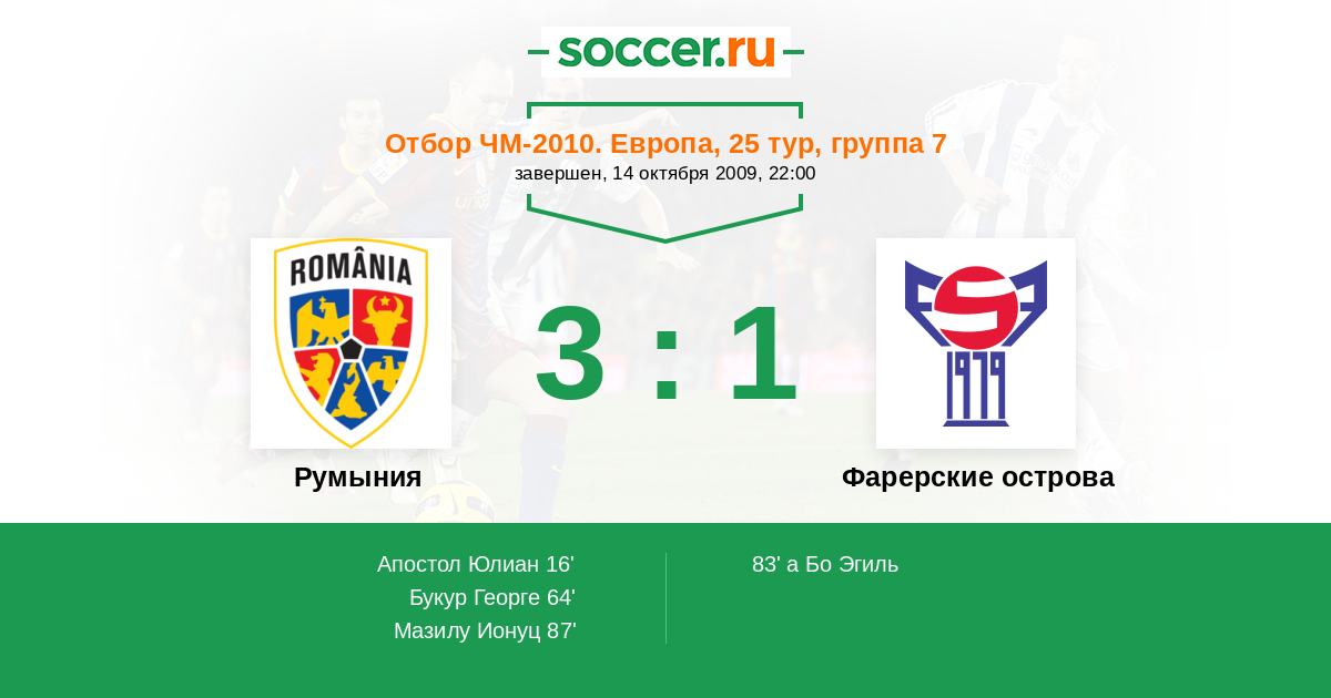 Румыния - Фарерские острова: обзор матча 14 октября 2009