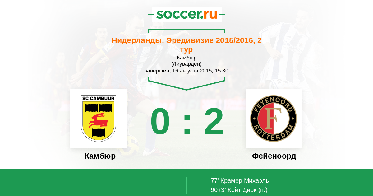 Камбюр - Фейеноорд: обзор матча 16 августа 2015