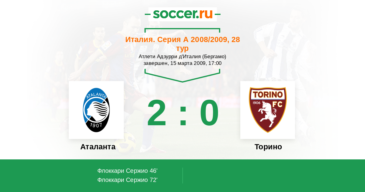 Аталанта - Торино: обзор матча 15 марта 2009