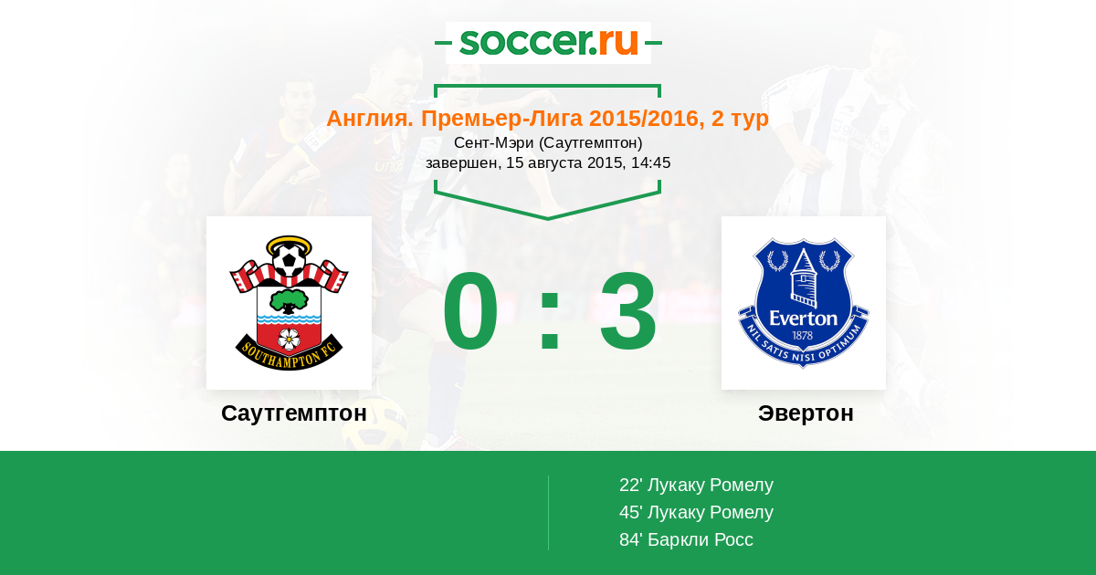 Саутгемптон - Эвертон: обзор матча 15 августа 2015