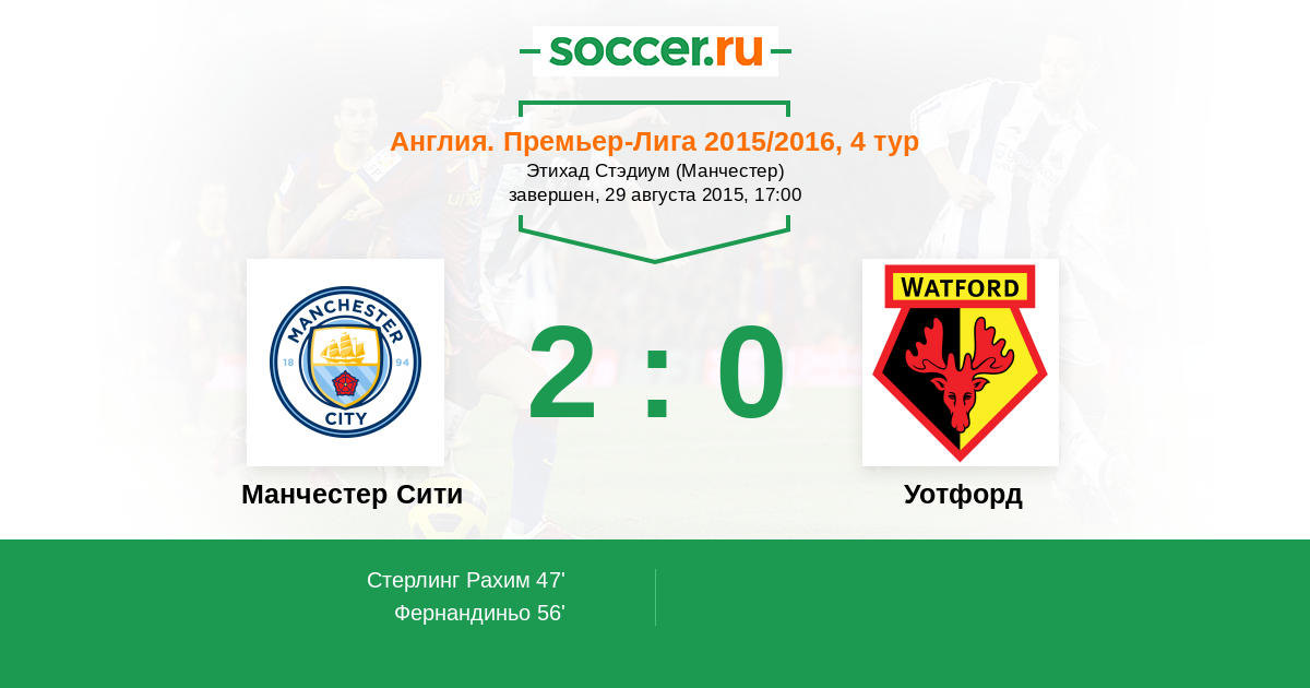 Манчестер Сити - Уотфорд: обзор матча 29 августа 2015