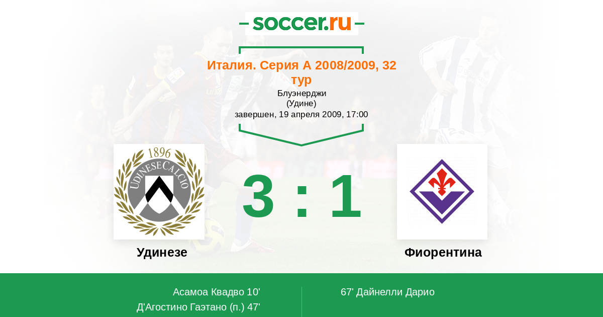 Удинезе - Фиорентина: обзор матча 19 апреля 2009