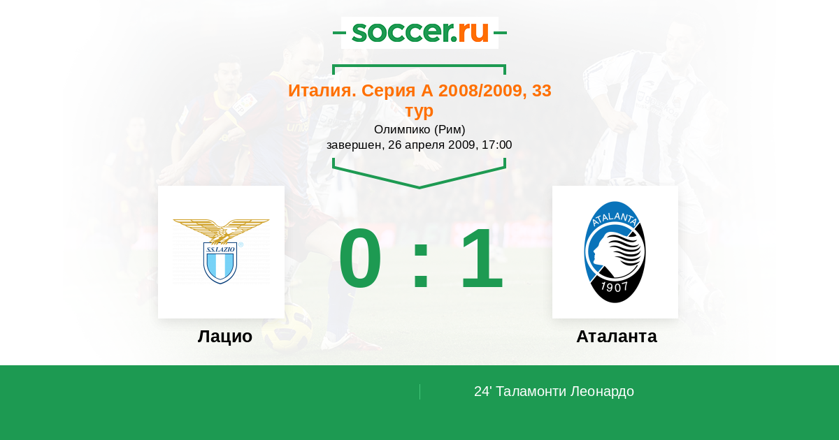 Лацио - Аталанта: обзор матча 26 апреля 2009