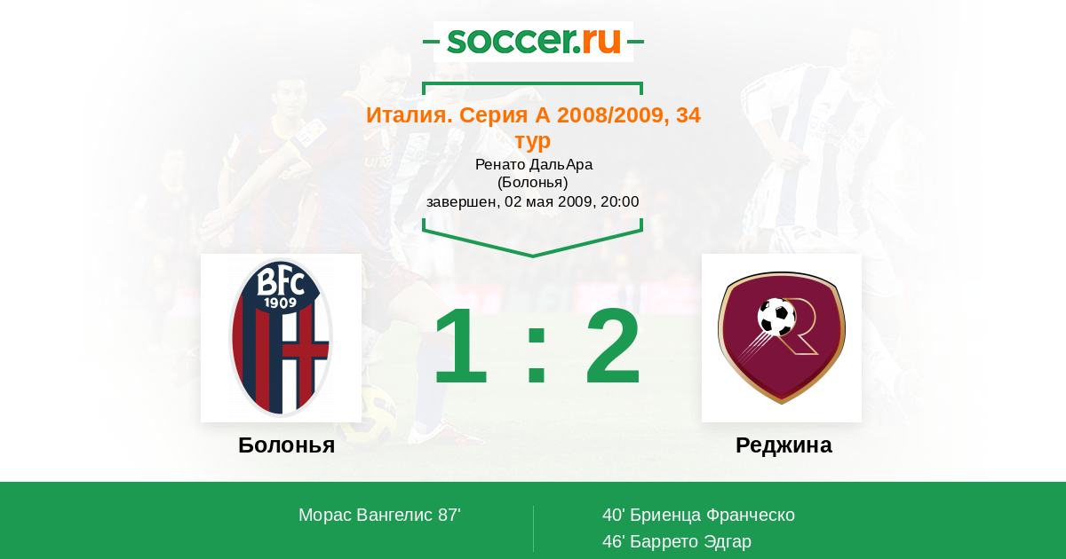 Болонья - Реджина: обзор матча 2 мая 2009