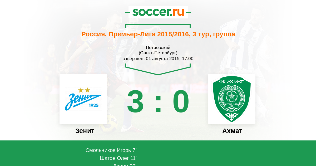 Приветствуем всех любителей футбола на портале Soccer.Ru! Субботний день продолжится в Санкт-Петербурге, где "Зенит" принимает грозненский "Терек". С событиями встречи в онлайн-режиме Вас будет знакомить комментатор Soccer.Ru Антон Сазонтов. Добро пожаловать!