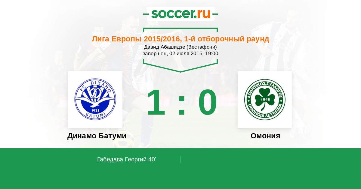 Динамо Батуми - Омония: обзор матча 2 июля 2015
