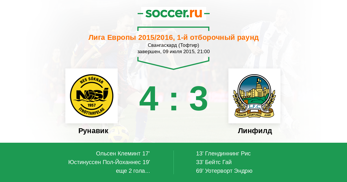 Рунавик - Линфилд: обзор матча 9 июля 2015
