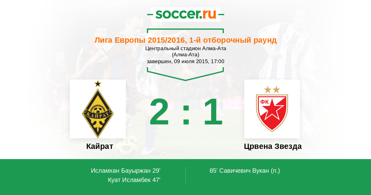 Кайрат - Црвена Звезда: обзор матча 9 июля 2015