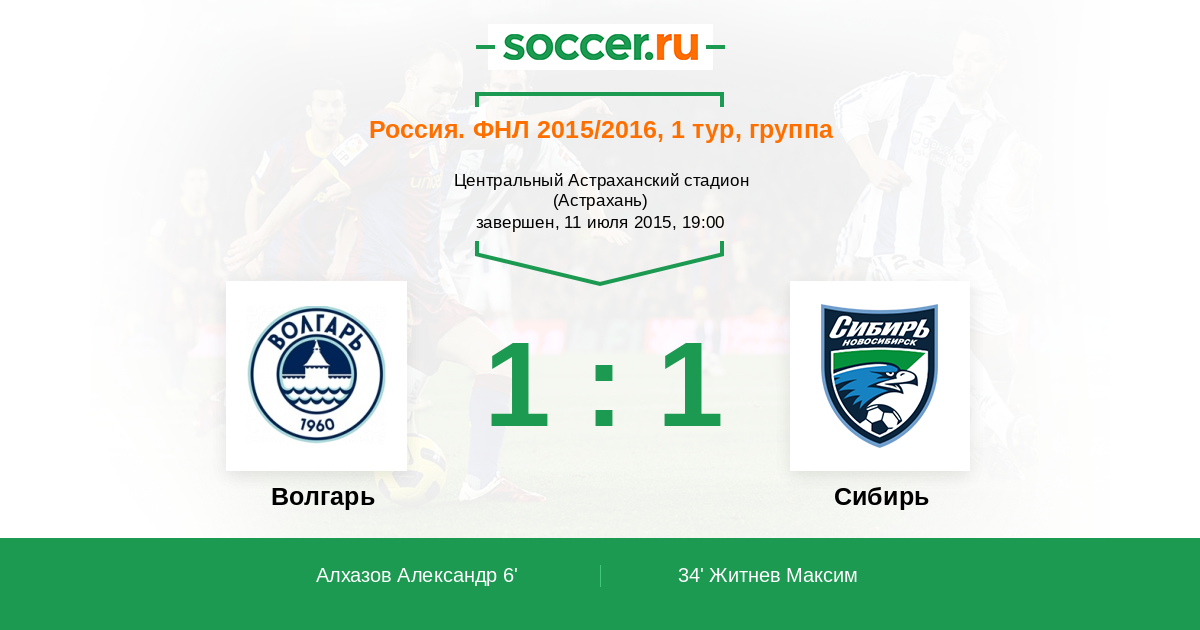 Волгарь - Сибирь: обзор матча 11 июля 2015