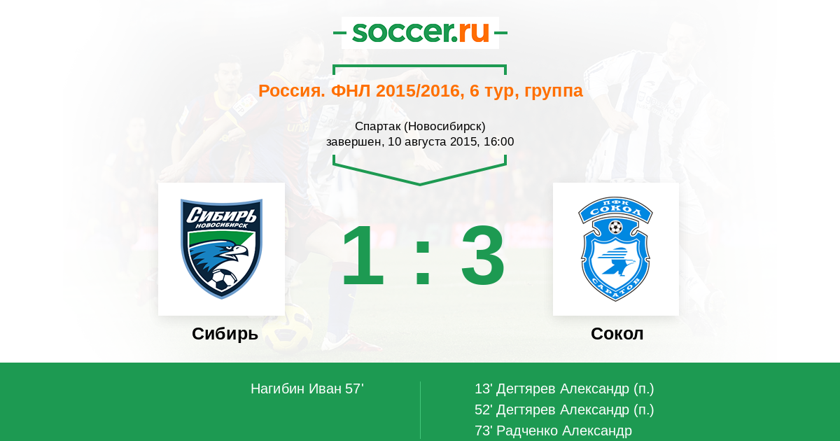 Сибирь - Сокол: обзор матча 10 августа 2015