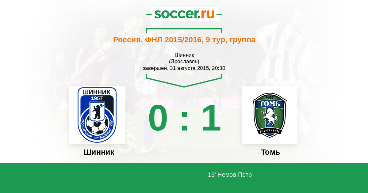 Шинник - Томь: обзор матча 31 августа 2015