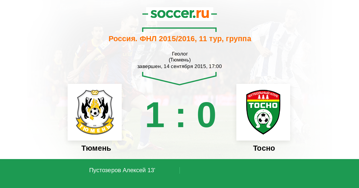 Тюмень - Тосно: обзор матча 14 сентября 2015