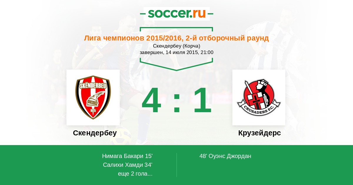 Скендербеу - Крузейдерс: обзор матча 14 июля 2015
