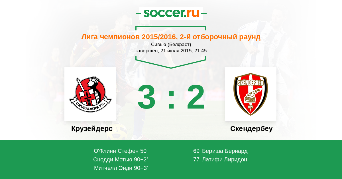 Крузейдерс - Скендербеу: обзор матча 21 июля 2015