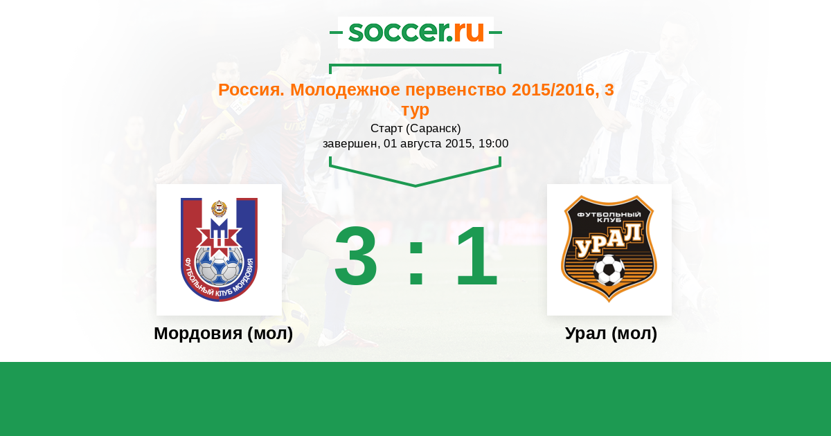 Мордовия (мол) - Урал (мол): обзор матча 1 августа 2015