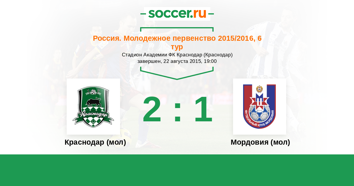 Краснодар (мол) - Мордовия (мол): обзор матча 22 августа 2015